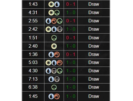 We had one win where our opponent conceded before we casted our first spell, as can be seen in the screenshot below: