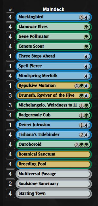 The decklist for this version of Michelangelo Shuffle can be found below as a screenshot from Arena: