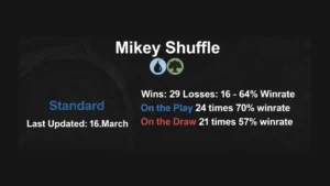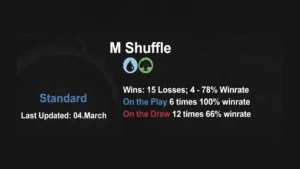Initial results of playing this version of Michelangelo Shuffle in BO1 on Arena include a 100% win rate on the play, a 66% win